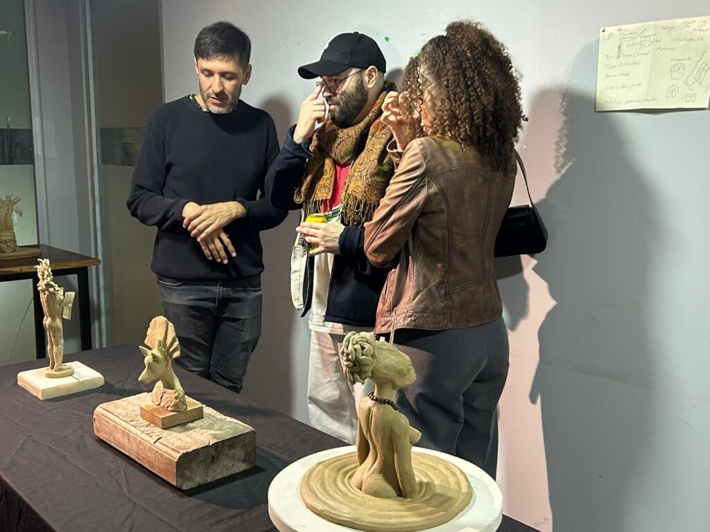 As esculturas apresentadas foram concebidas como protótipos escaláveis, capazes de se adaptar a diferentes contextos e dimensões. Nascem de uma cosmogonia inventada, onde formas antropomórficas, símbolos pré-hispânicos e espiritualidades africanas se entrelaçam em harmonia. O público teve a oportunidade de acompanhar o processo de produção e de contactar directamente com as peças, num ambiente de partilha e experimentação artística.