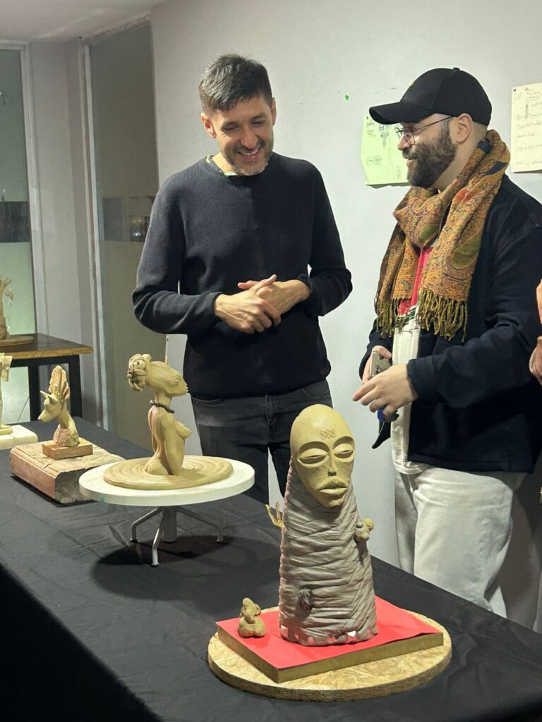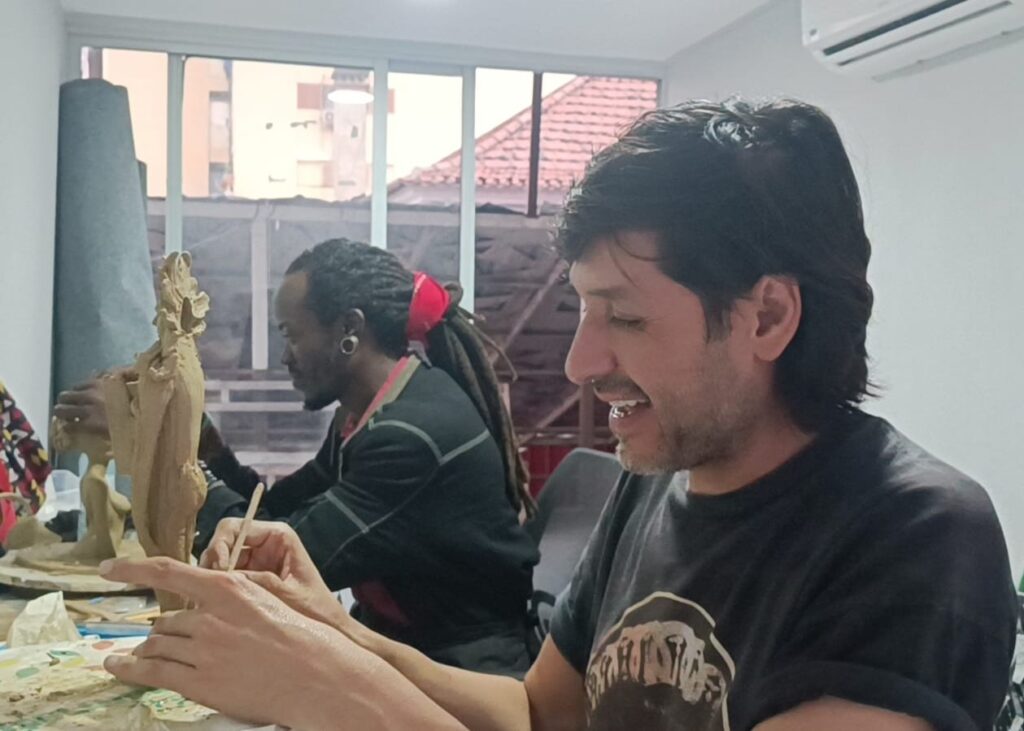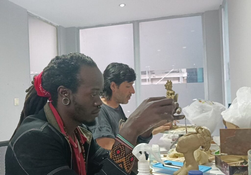 O que começou como uma residência artística individual — a primeira de um artista estrangeiro no Estúdio-V — rapidamente evoluiu para uma colaboração criativa com Mac Verkron, conhecido pelas suas obras em murais, pintura e ilustração, e que tem vindo a explorar a modelagem em barro como extensão das suas vivências pessoais. “Juntos, estivemos a explorar diferentes técnicas de cerâmica e a interagir com elementos culturais representativos tanto do México como de Angola”, acrescentou García, sublinhando o valor do intercâmbio artístico e cultural proporcionado pelo colectivo Verkron.