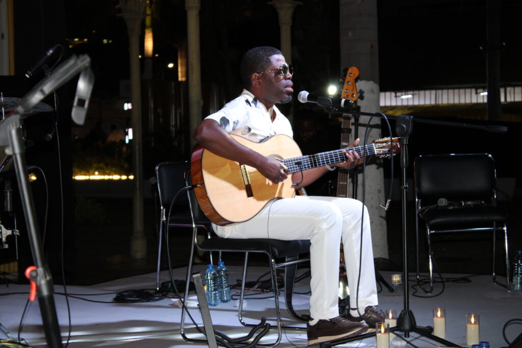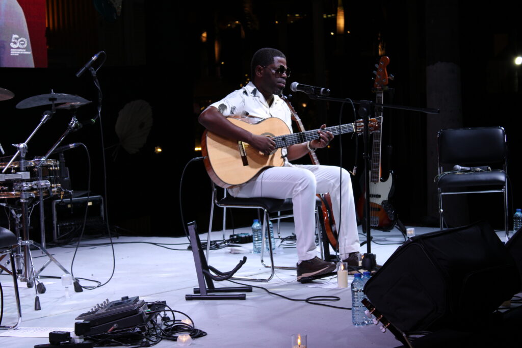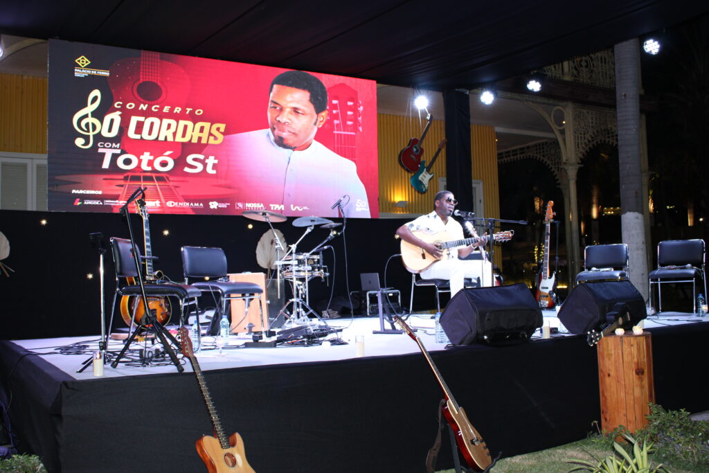 O pátio do Palácio de Ferro encheu-se na noite de sexta-feira para o concerto “Só Cordas”, que marcou o encerramento da temporada cultural de 2025 do espaço. Totó ST, o mesmo músico que inaugurou a agenda do emblemático edifício luandense e espaço de cultura em Janeiro passado, regressou com proposta minimalista: voz, quatro guitarras e percussão para revisitar sucessos de álbuns como “Vida das Coisas” (2006) e temas mais recentes.