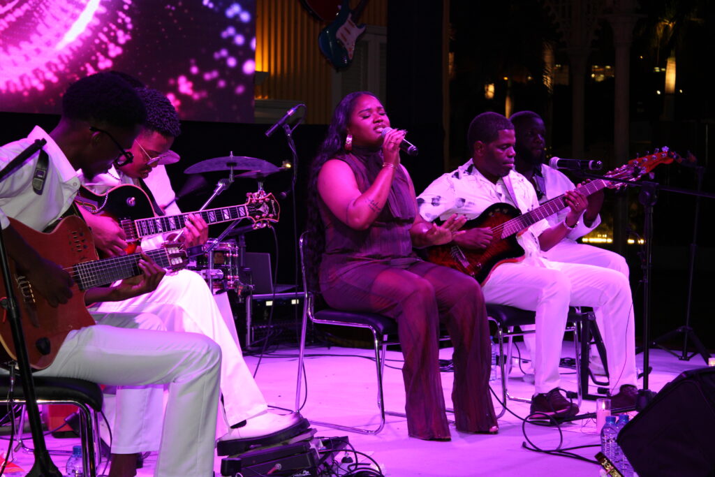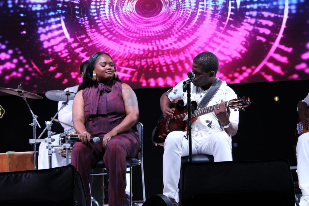 A cantora Edmázia Mayembe, convidada especial da noite, prestou homenagem ao anfitrião antes de interpretar “Erro Bom”, primeiro grande sucesso da sua discografia. Seguiu-se “Amor Yame”, que fundiu com “Ame Ndukussole” de Totó ST numa emenda que explorou afinidades entre repertórios.